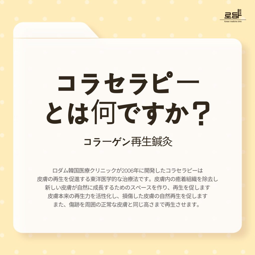 コラテラピーとも呼ばれるロダム韓医院のコラテラピーは、2006年から始まった傷跡治療施術で、