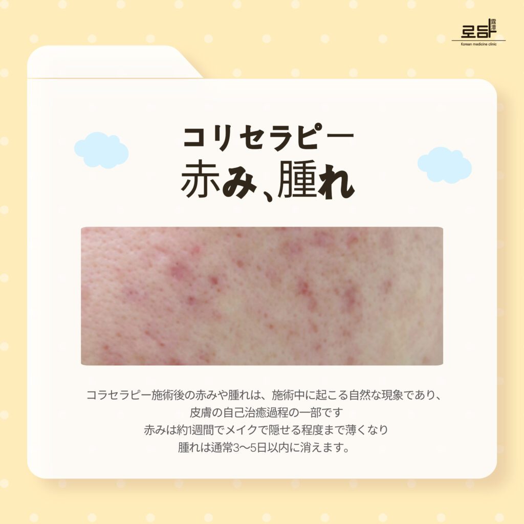 ロダム韓方医院江南院のコラセラピー、赤み、腫れ、施術後の管理方法。