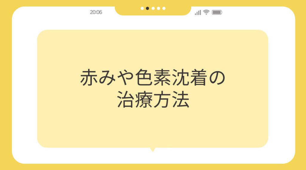 つまり、赤みは血管中心の治療が、色素沈着はメラニン抑制および除去が核心である点で治療の方向性が明確に区別されます。