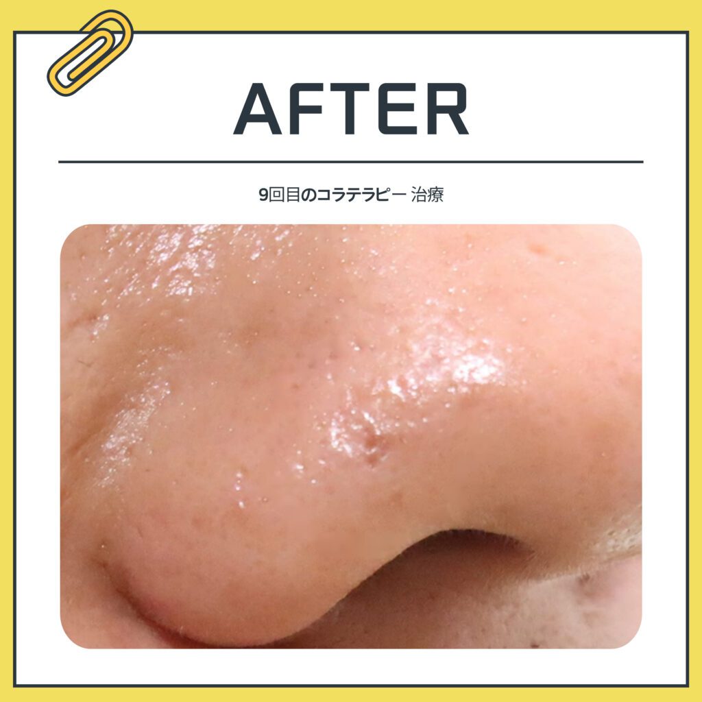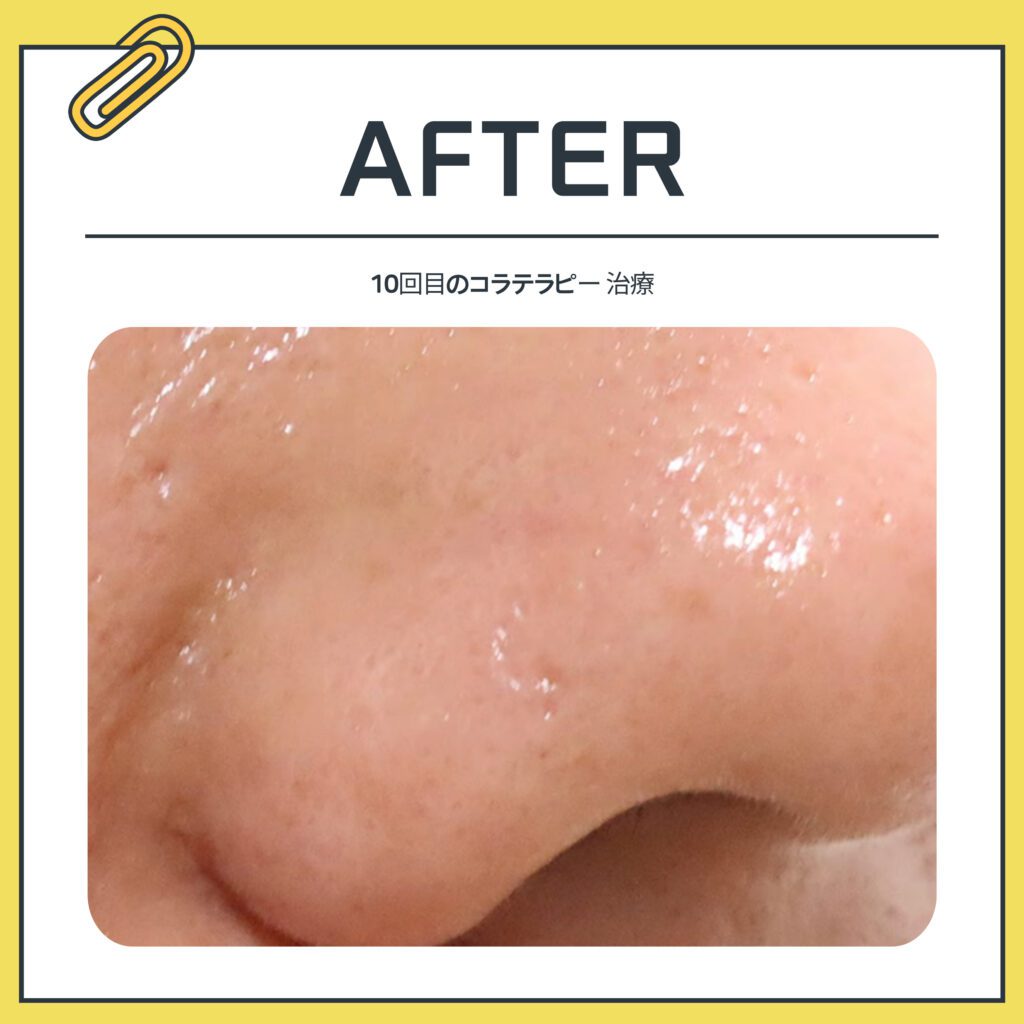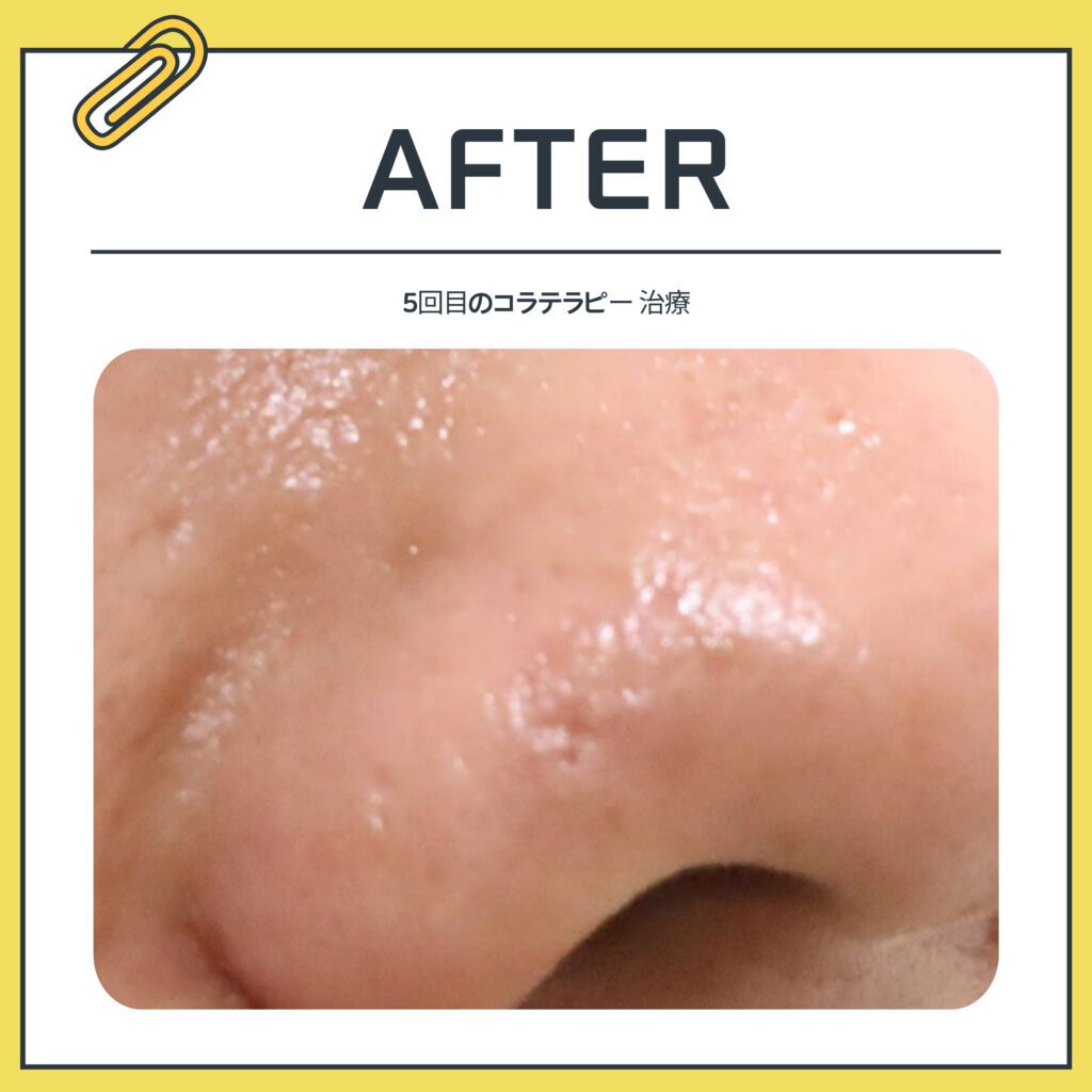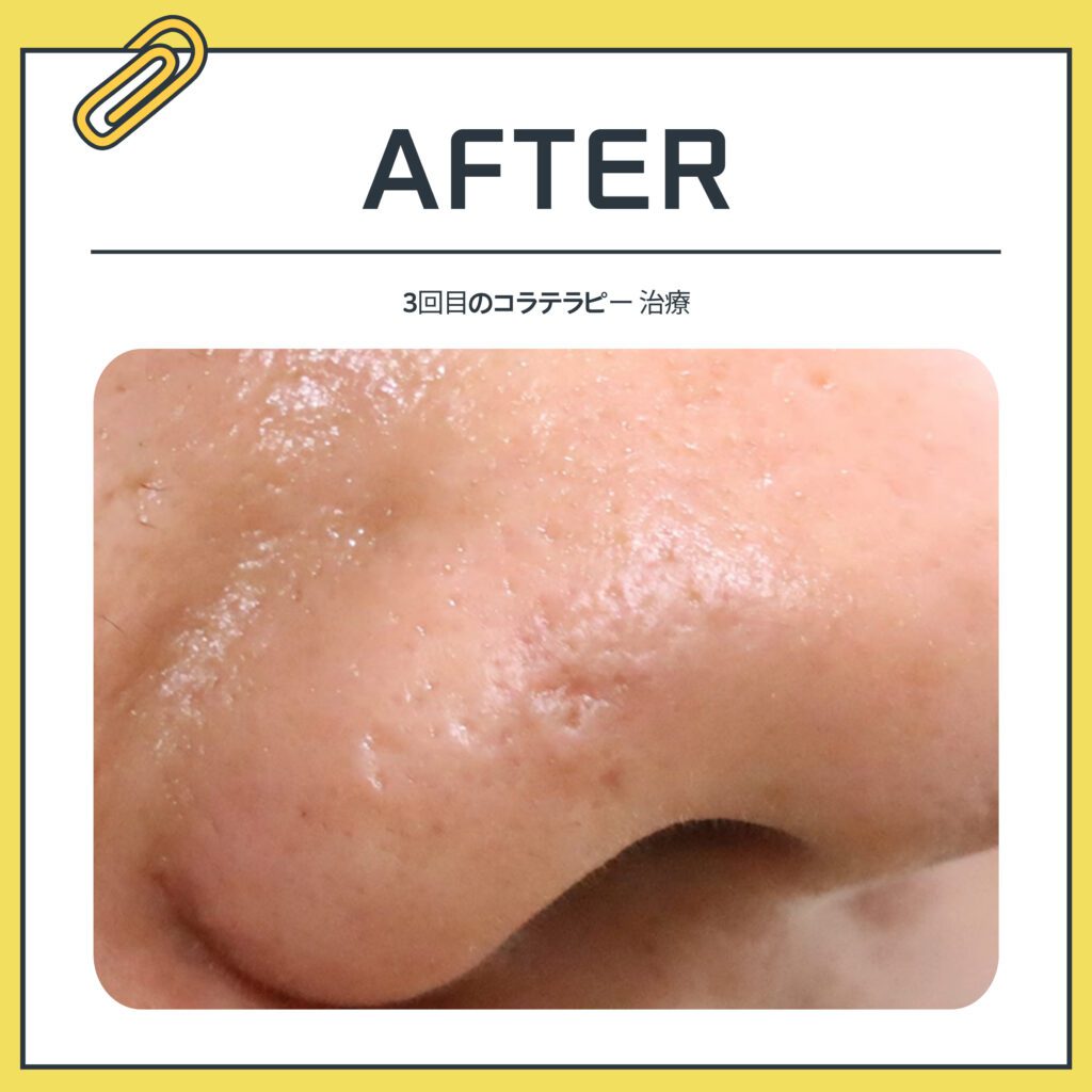 そのため、今日ご紹介する患者様は鼻にできた陥没傷跡をコラテラピーで治療しました。