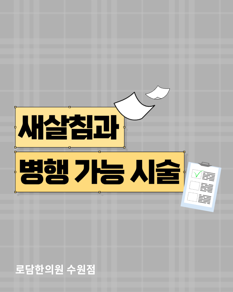 오늘은 이렇게 새살침과 병행 가능한 시술에 대하여 정보를 전달드렸습니다.