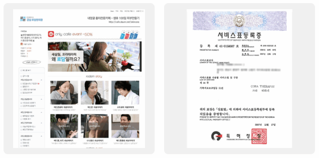 그다음 해인 2007년에 ‘코라테라피’라는 명칭으로 정식 특허 상표를 받은 시술입니다.