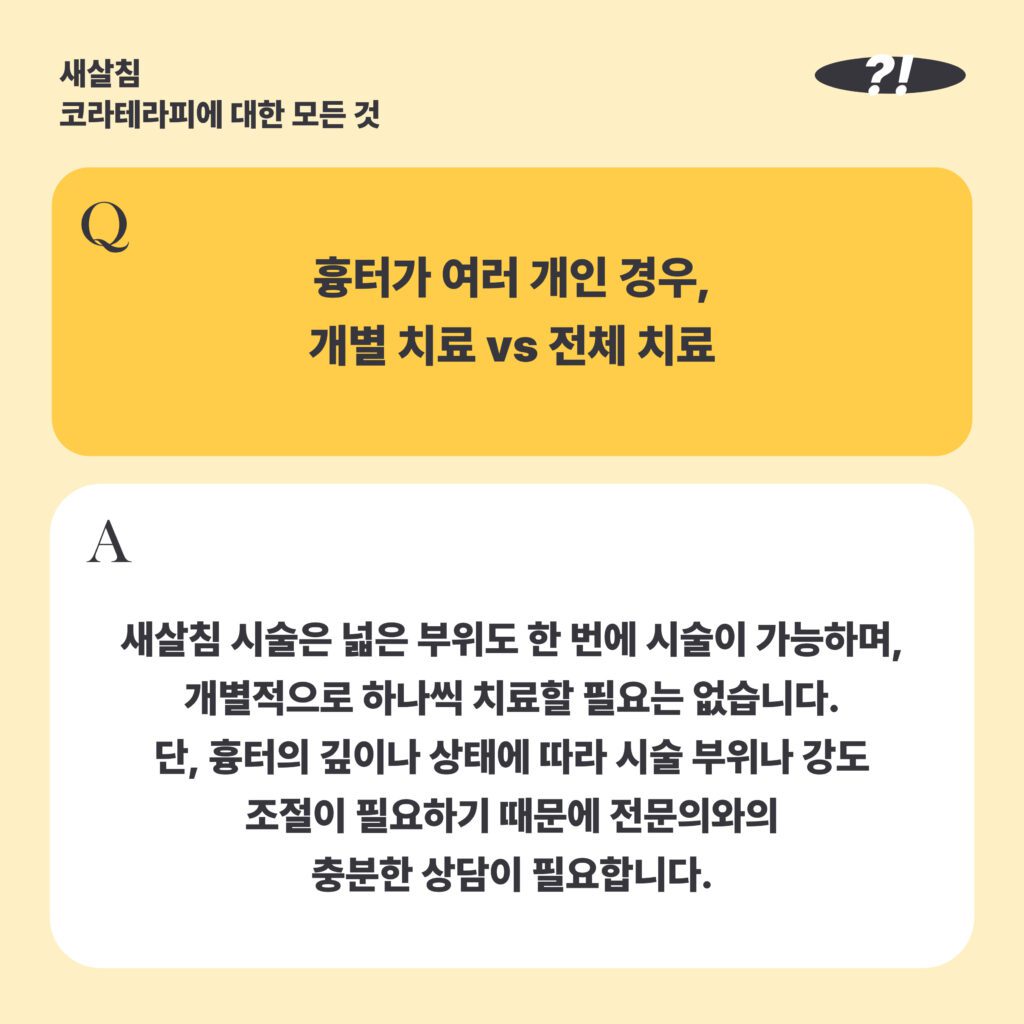 흉터가 국소적으로 여러 개인 경우, 개별 치료 vs 전체 치료