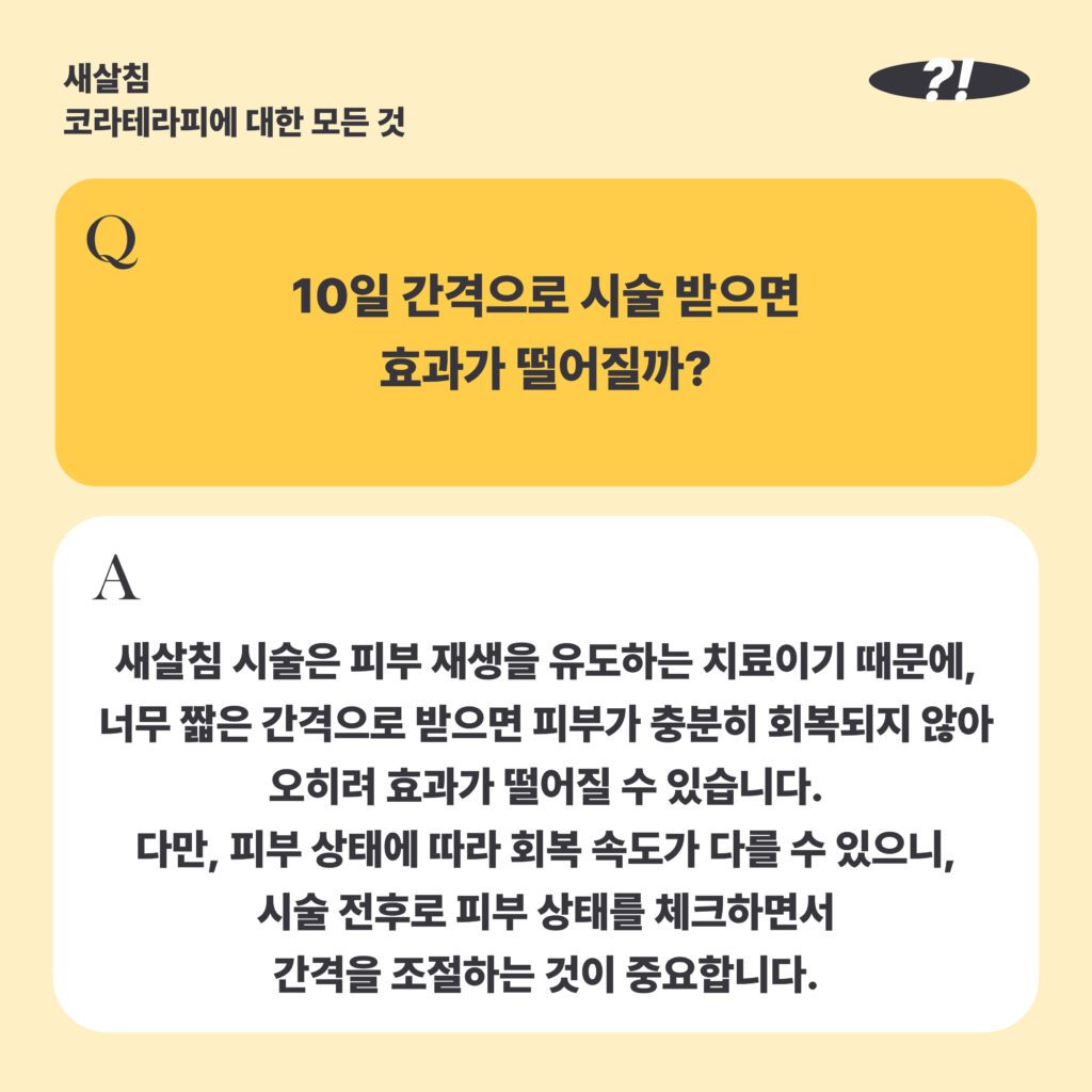 너무 짧은 간격으로 받으면 피부가 충분히 회복되지 않아 효과가 떨어질 수 있습니다.