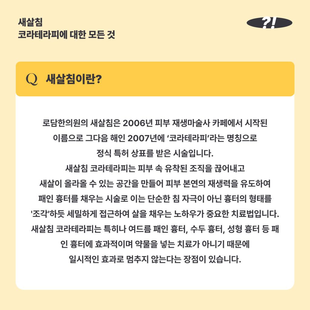 로담한의원의 새살침은 2006년 피부 재생마술사 카페에서 시작된 이름으로