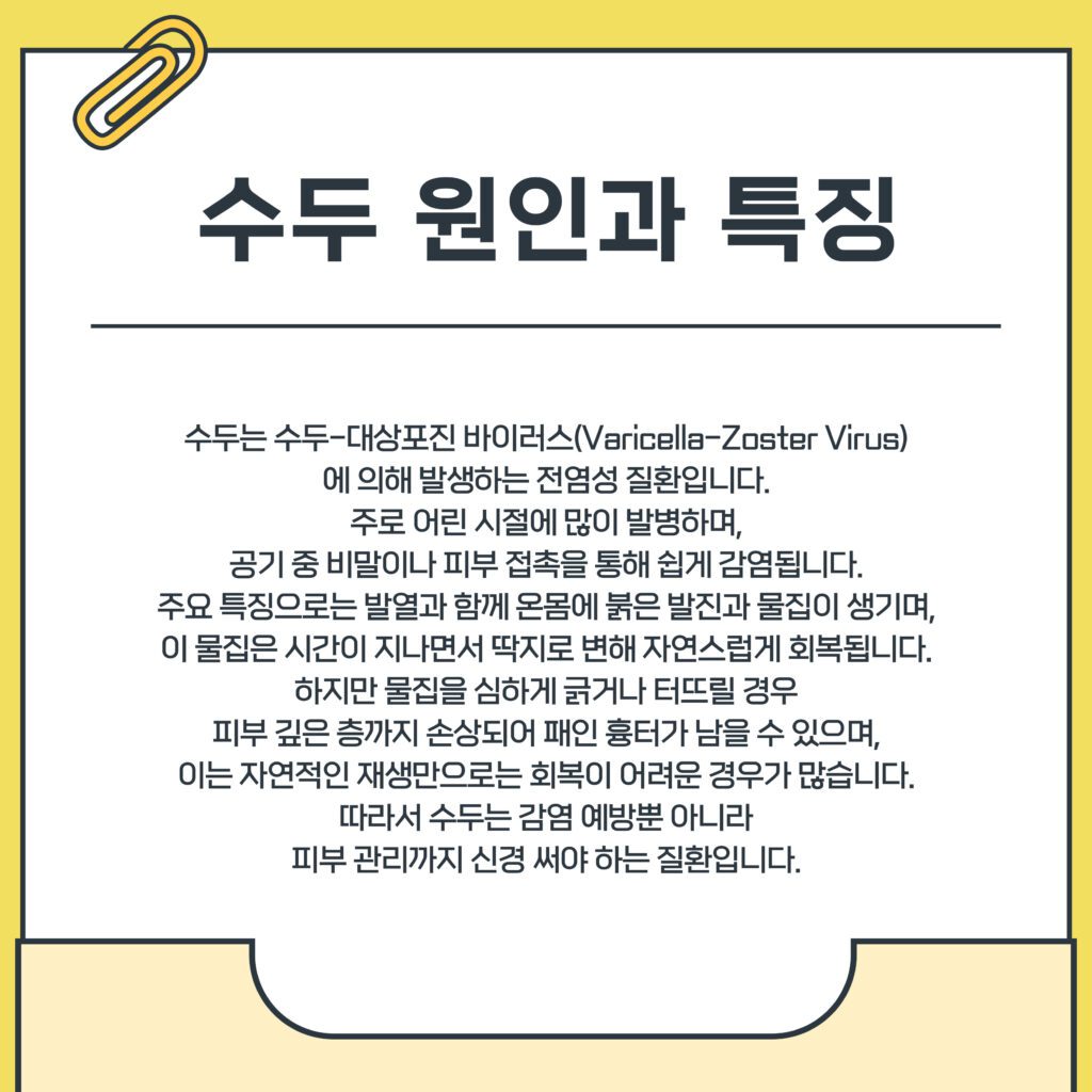 먼저 수두의 원인과 특징을 살펴보겠습니다.