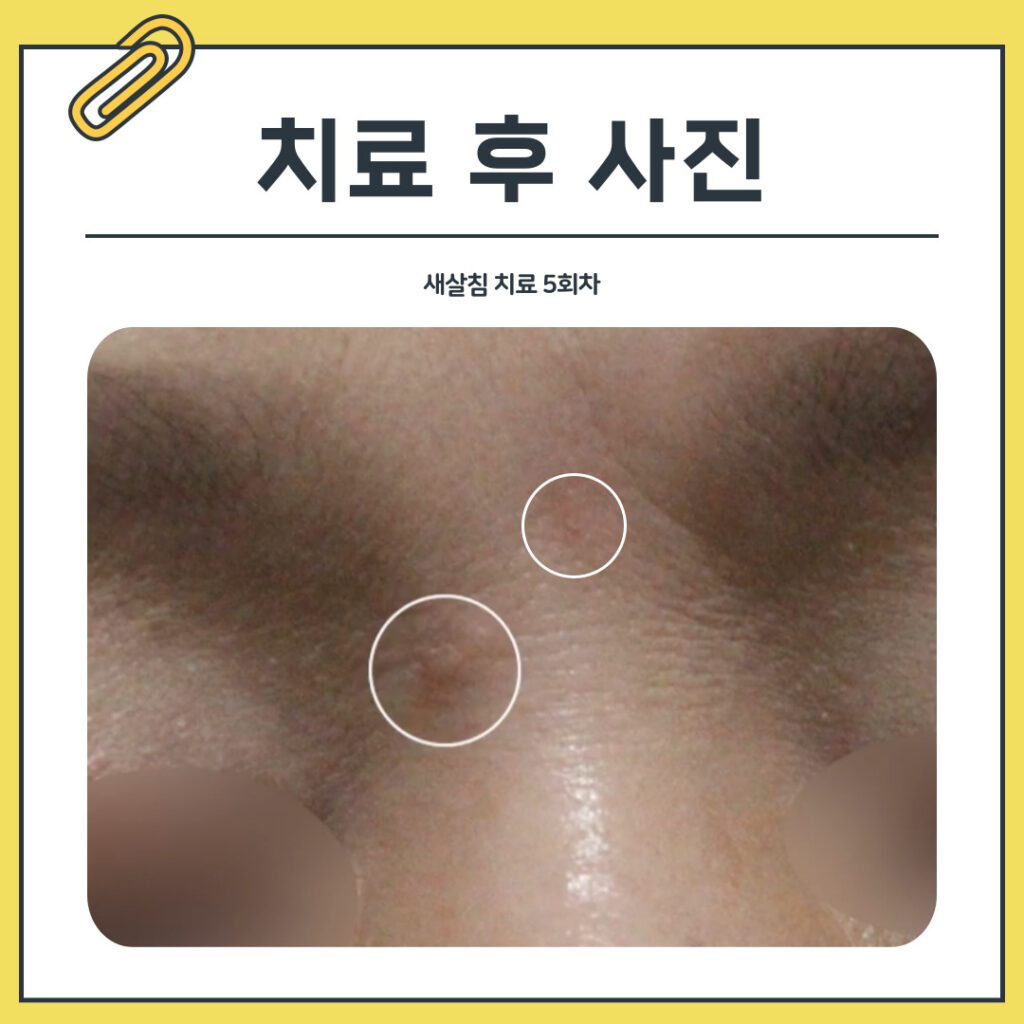 5회차 시술 이후의 상태를 보면, 미간에 있던 흉터는 붉은 기가 조금 남아있긴 했지만
