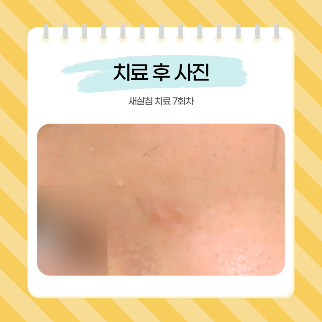 7회차 시술이 종료된 후에는 흉터 부위가 거의 눈에 띄지 않을 정도로 개선되었습니다.