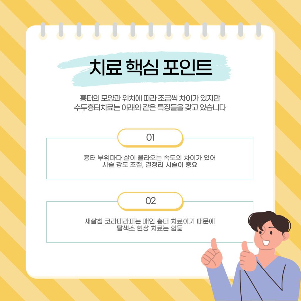 치료 후에도 깊은 흉터가 남을 수 있다는 특징이 있습니다.
