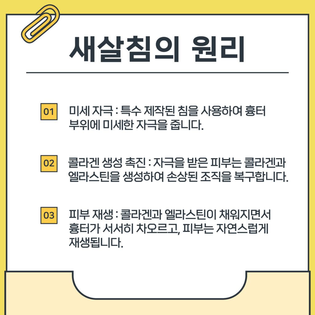 그렇다면 패인 흉터 치료에 효과적인 새살침의 원리는 무엇일까요?