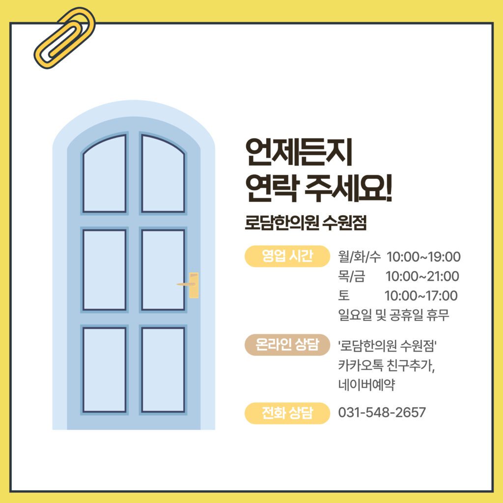 로담한의원 수원점은 늘 여러분들을 기다리고 있습니다.