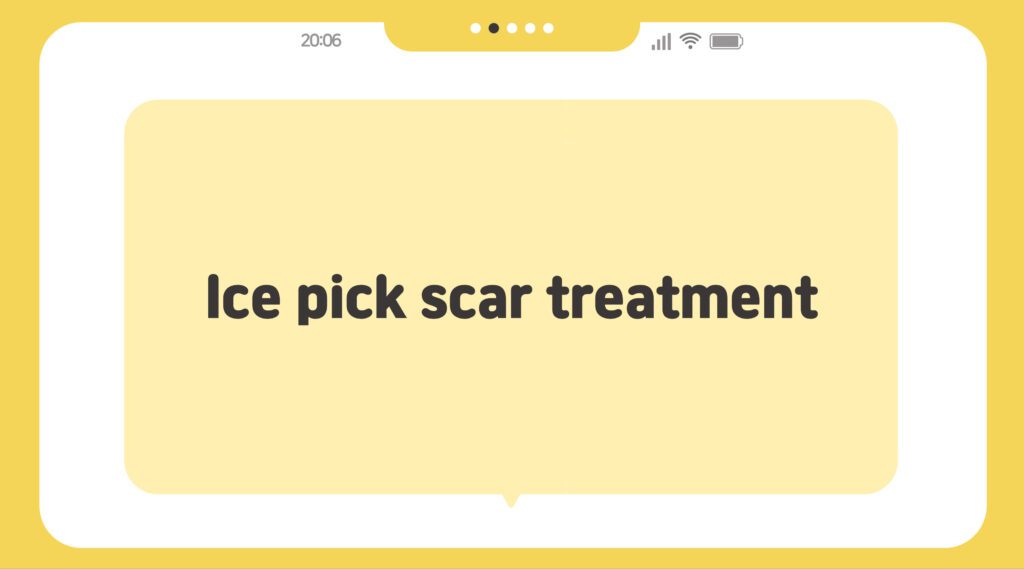 Treatment for ice pick scars includes punch techniques, TCA Cross, and Coratherapy.