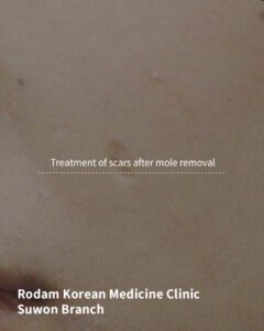 Read More안녕하세요, 흉터 지우는 한의사 로담한의원 수원점 이승엽 원장입니다.얼굴에 있는 점은 아주 저렴하게 제거 할 수 있는 병원들이 많아많은 분들이 크게 고민 안하시고 점을 빼곤 하십니다.하지만 점을 제거할 때 피부와 점의 상태를 고려하지 않고 제거를 하다보면뺀 부분이 흉터로 남을 수도 있습니다.이번에 소개해드릴 환자분은 어릴 때 점을 제거한 뒤,그 부위에 울퉁불퉁한 패...