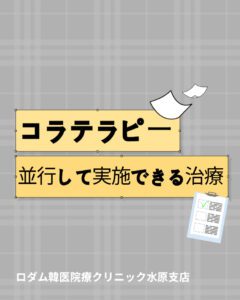 こんにちは、傷跡を消す 韓医師 ロダム 韓医院 水原店のイ・サンヨプ 韓医師 です。コラテラピー 治療を受けに来られる方の中には、ボトックスやスキンブースター、トーニング、レーザーなど他の施術を一緒に受けたいと希望される方が多いです。そのため、相談を受ける際にこれに関連した質問を多くいただきます。今日はこれま...