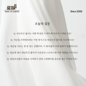 Q.수두 흉터는 왜 생기고 자연적으로 사라지지 않나요? A.수두 흉터는 수두를 앓는 동안 피부에 물집이 생기고 딱지가 앉는 과정에서 발생합니다. 이때 간지러워 긁거나 딱지가 일찍 떨어지면서 진피층 손상이 일어나고, 이로 인해 움푹 패인 형태의 흉터가 남게 됩니다. 손상된 진피층은 자연적인 재생이 어렵기 때문에 시간이 지나도 흉터가 사라지지 않고 그대로 남는 경우가 많습니...