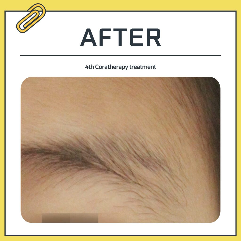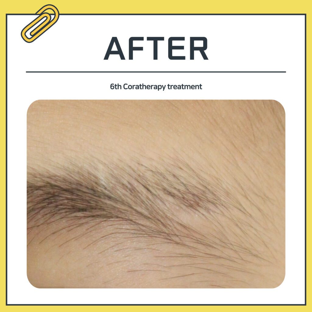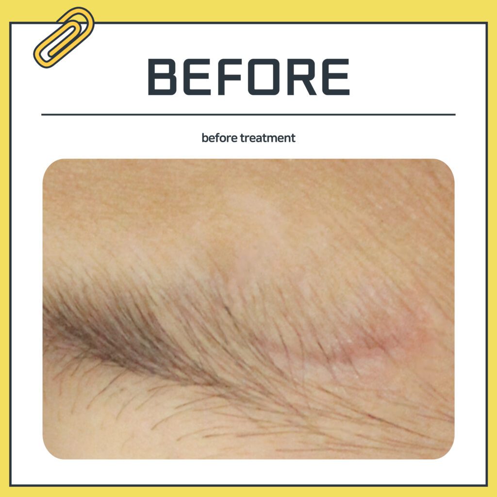 you can see that the eyebrow, which had disappeared due to the scar, has grown back.
