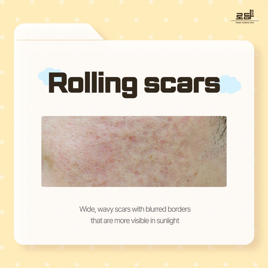 : Rolling scars are larger and lack defined edges, making them more challenging to treat.