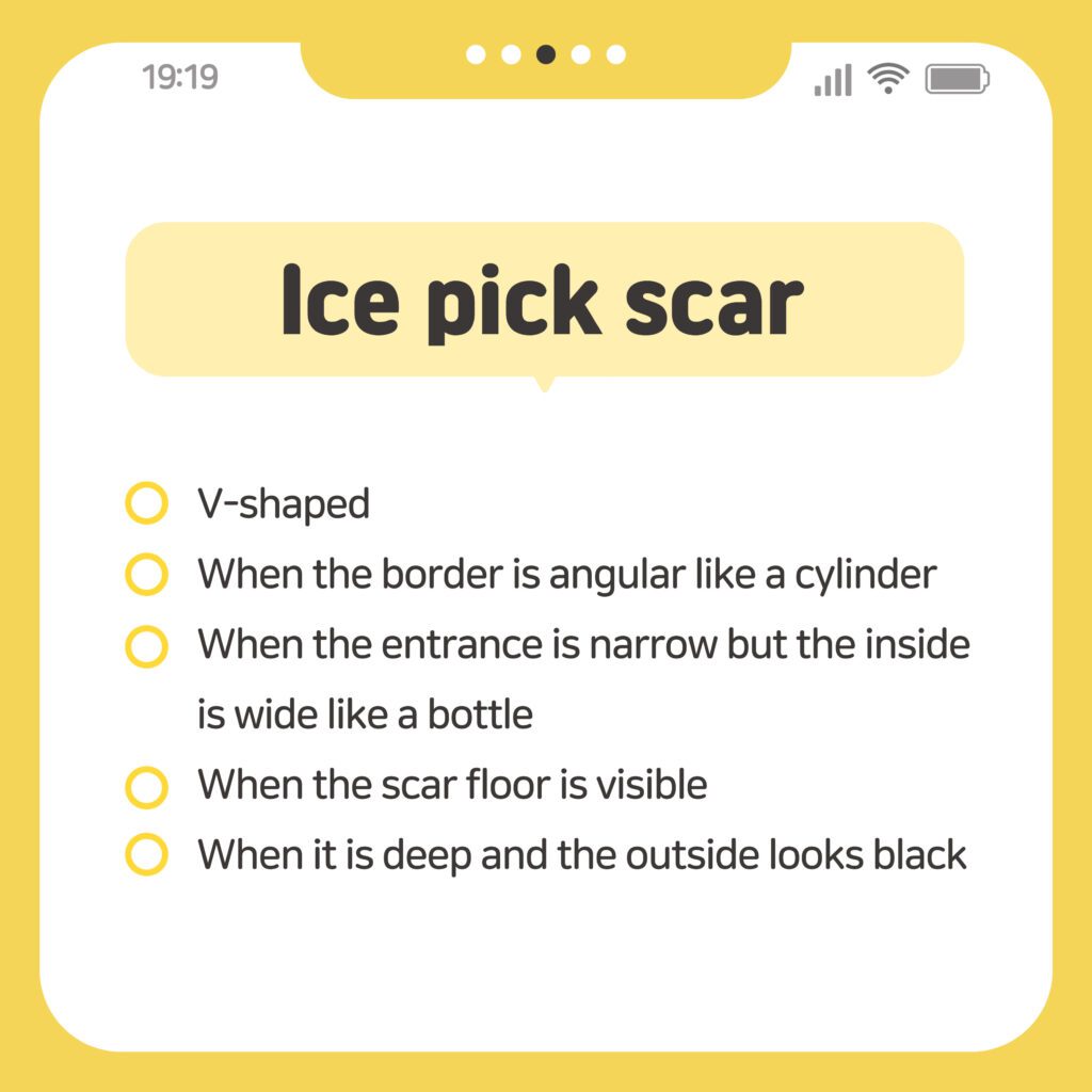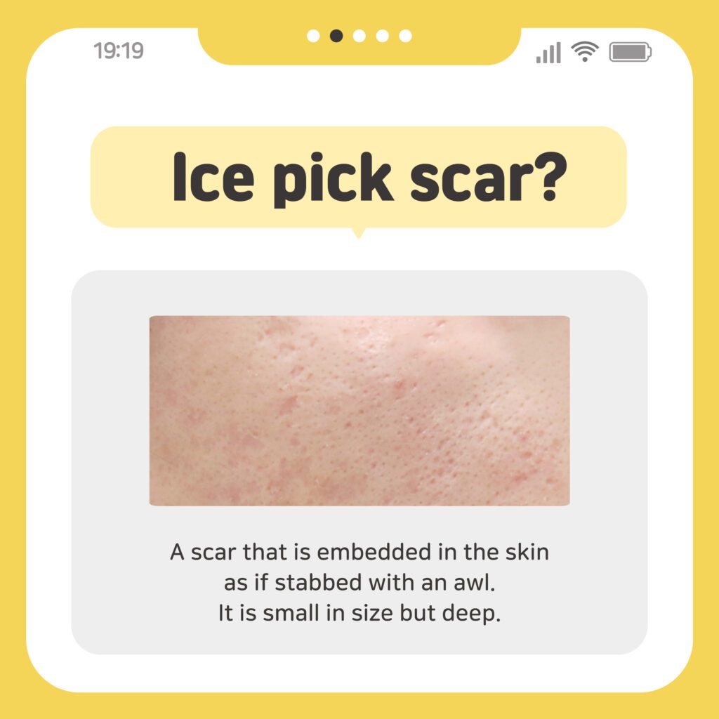 Among them, ice pick scars, which are deep and narrow like needle pricks,
