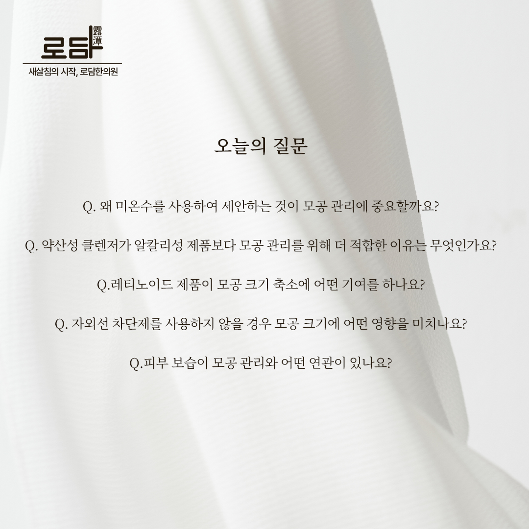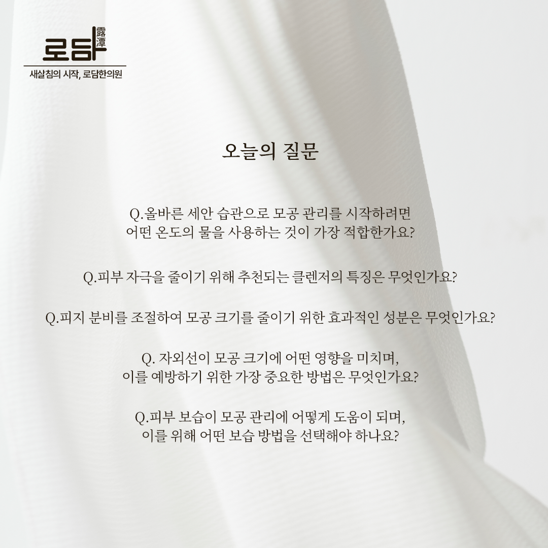 Q.왜 미온수를 사용하여 세안하는 것이 모공 관리에 중요할까요?