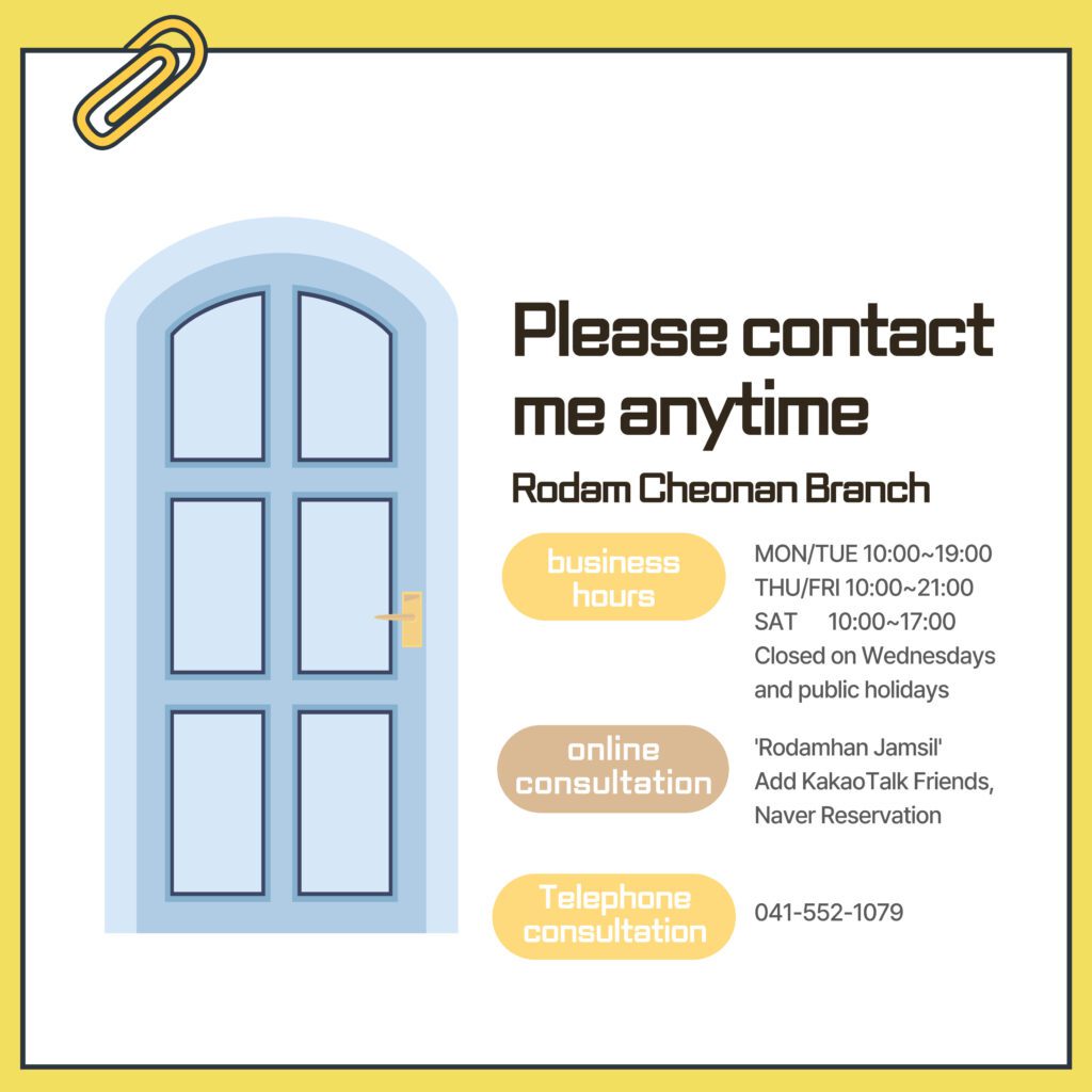 please contact Rodam Korean Medicine Clinic Cheonan branch.