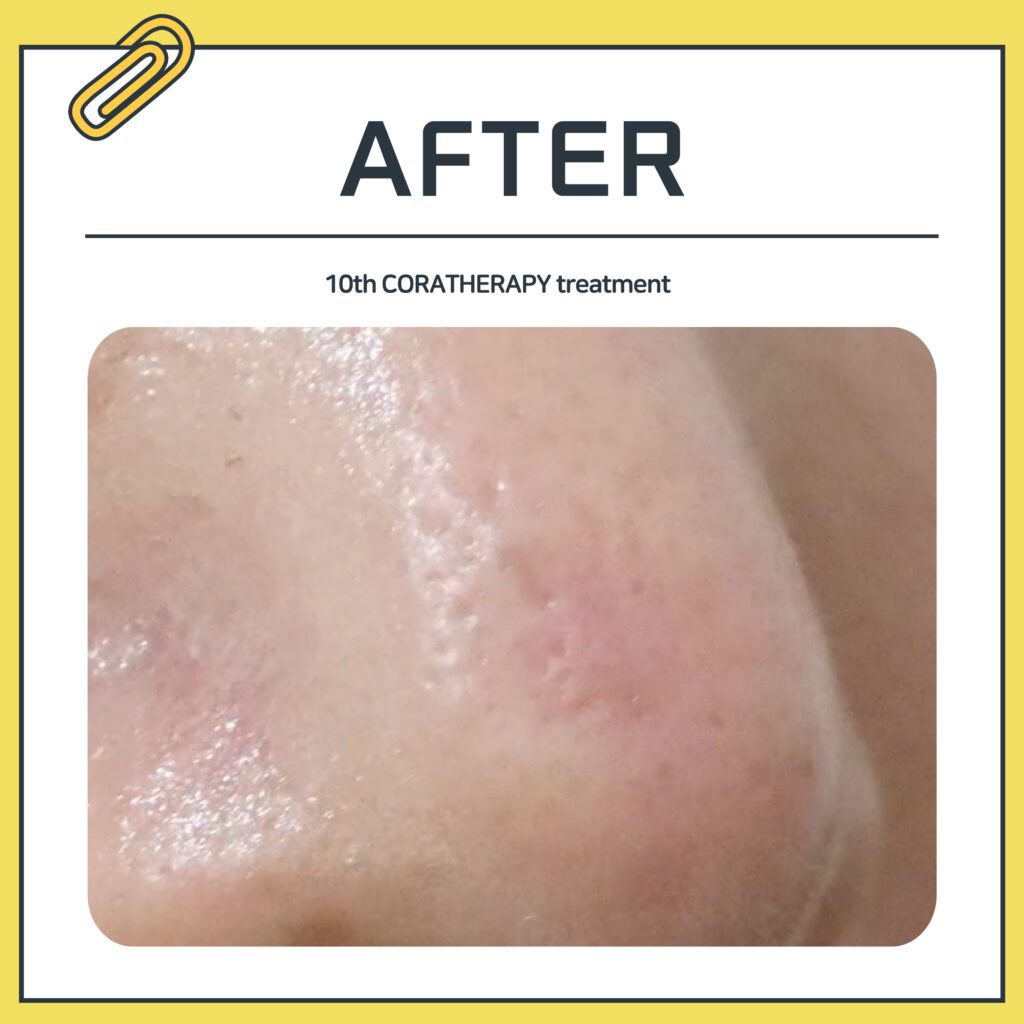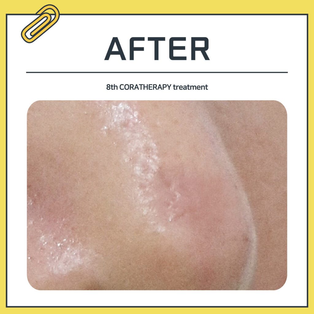 From the third session of Coratherapy, the scar area began to fill in quickly,