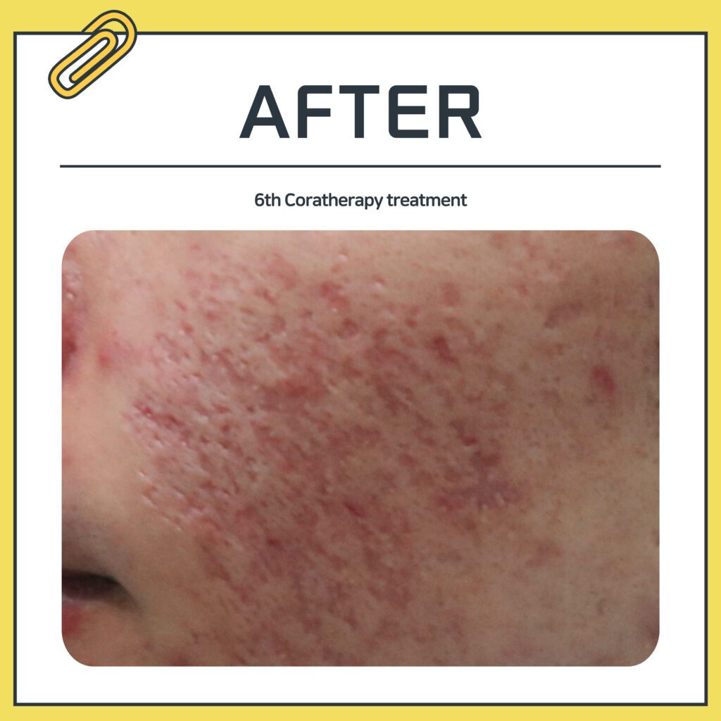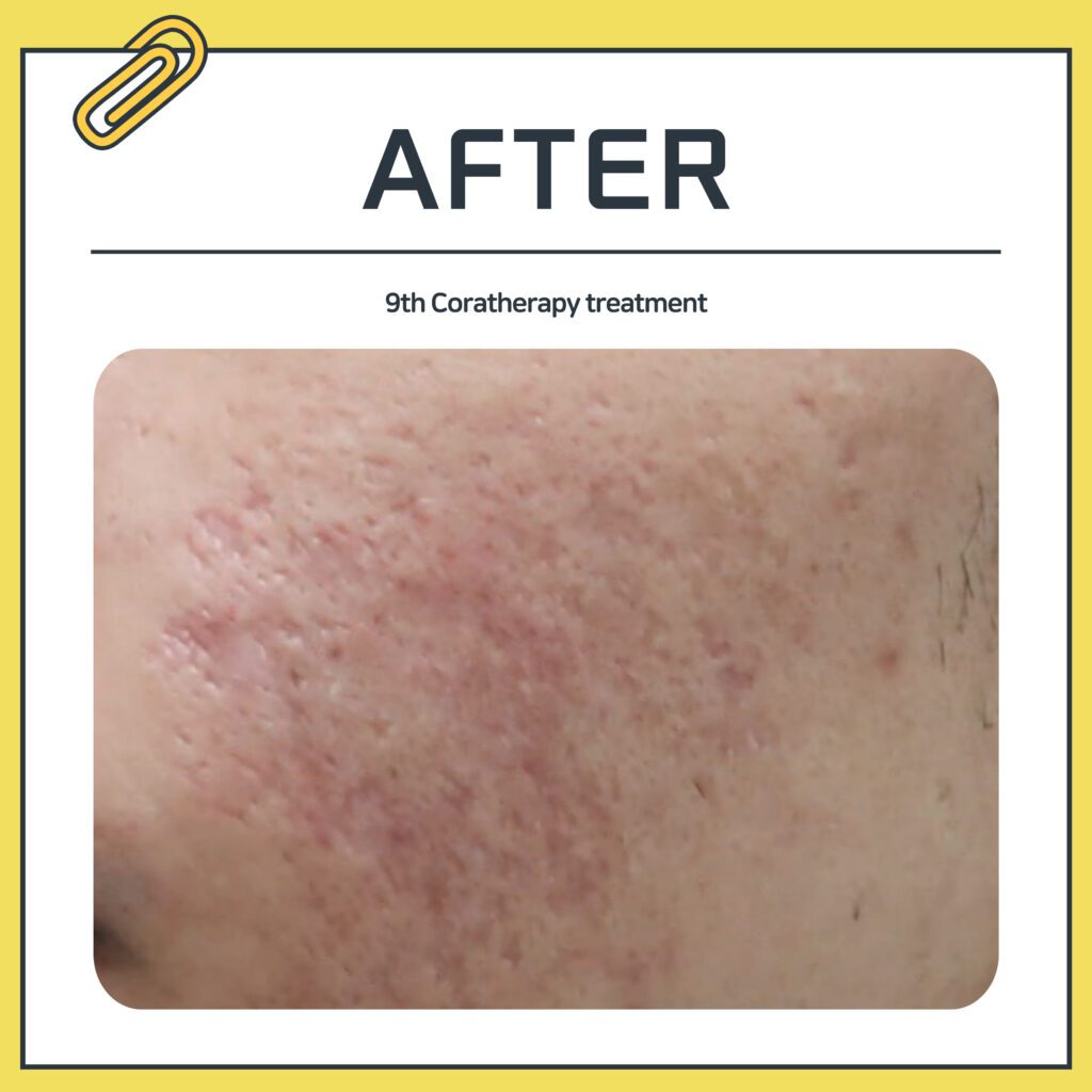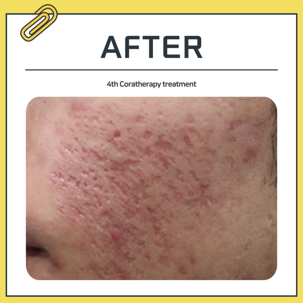 By stimulating the scarred areas with Coratherapy, collagen production is promoted,