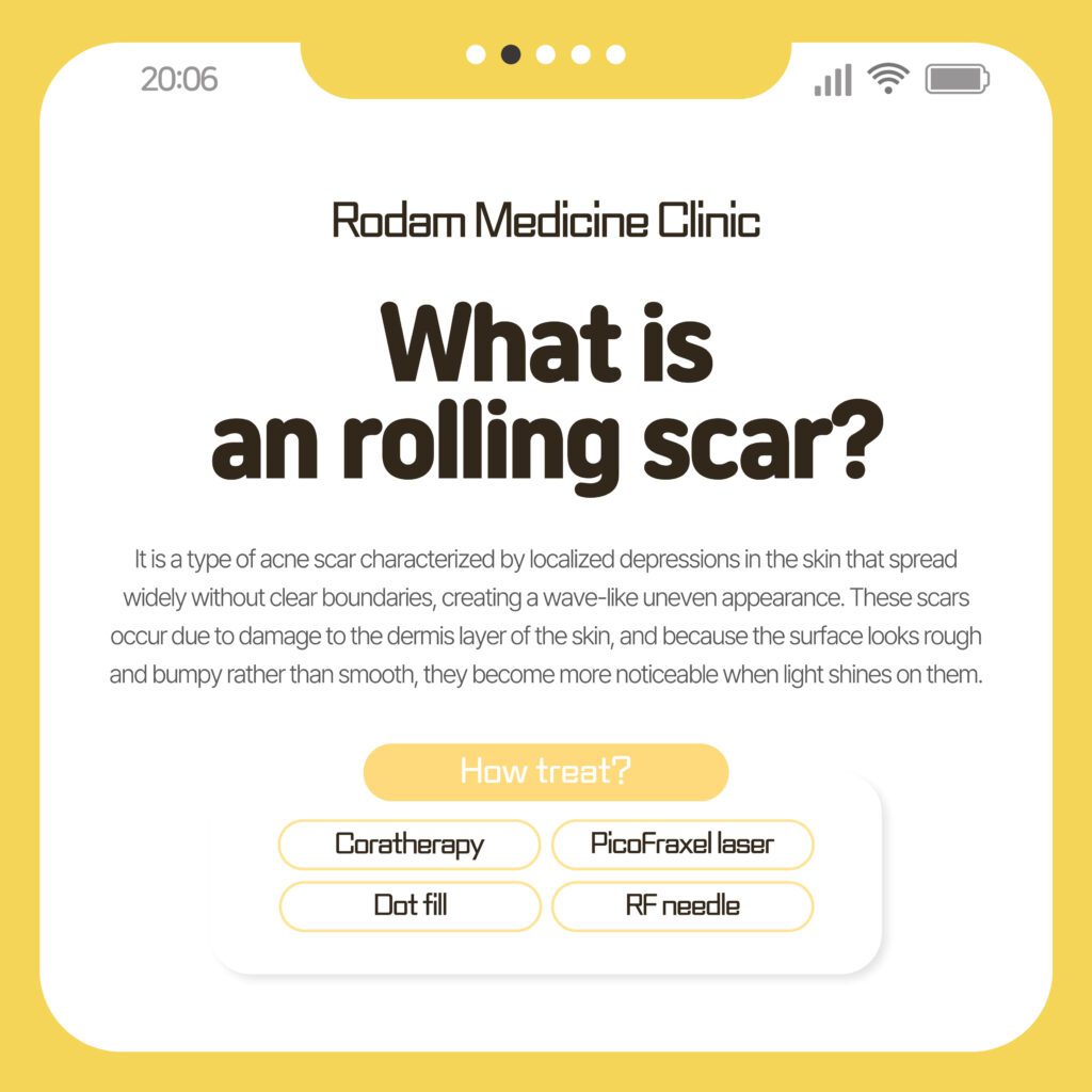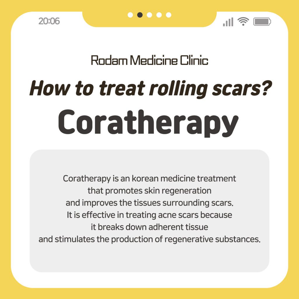 Rolling scars refer to pitted acne scars treatment, Coratherapy at Rodam Korean Medicine Clinic.