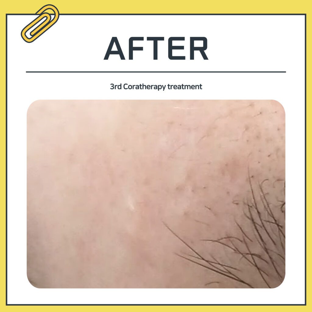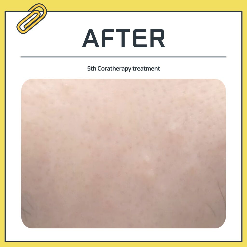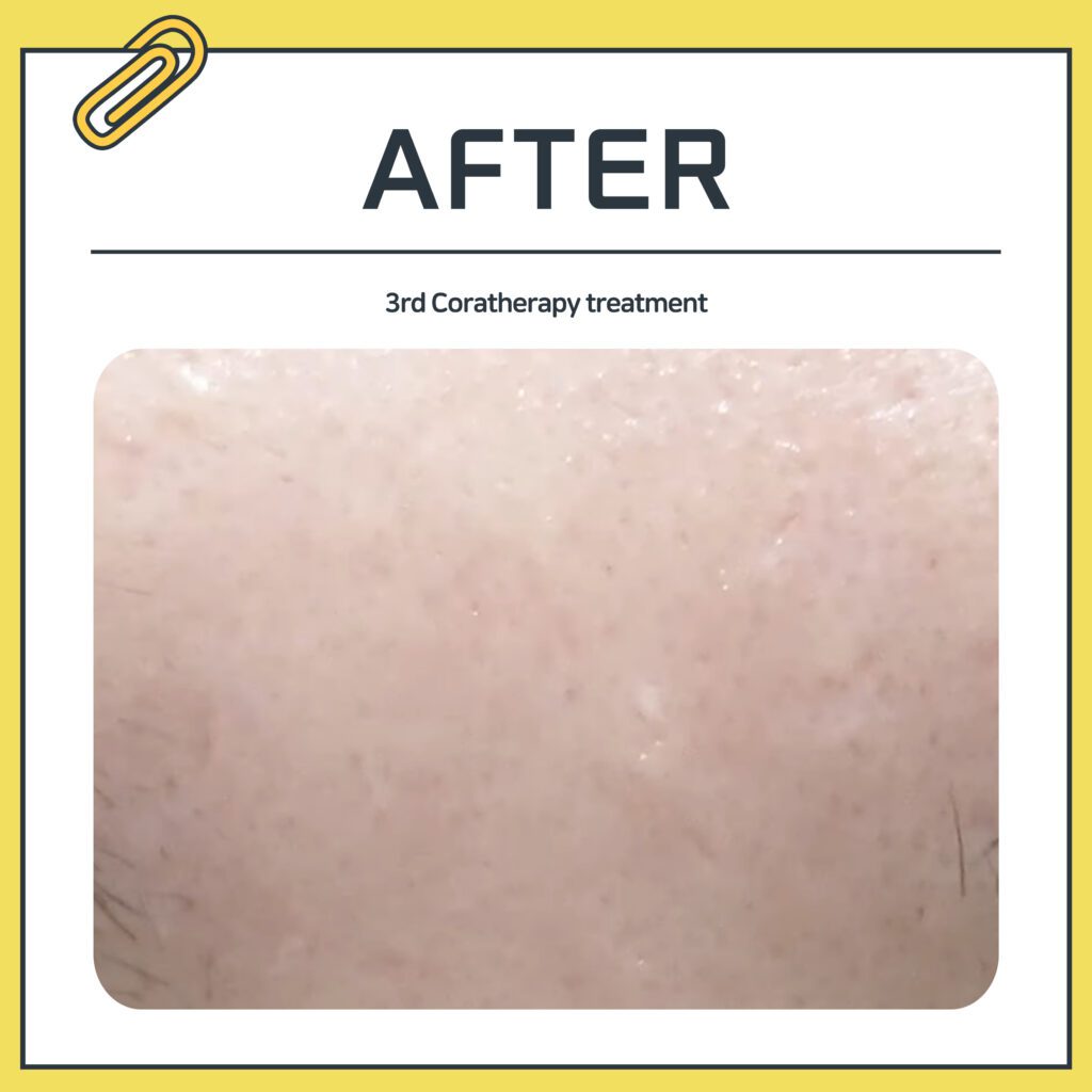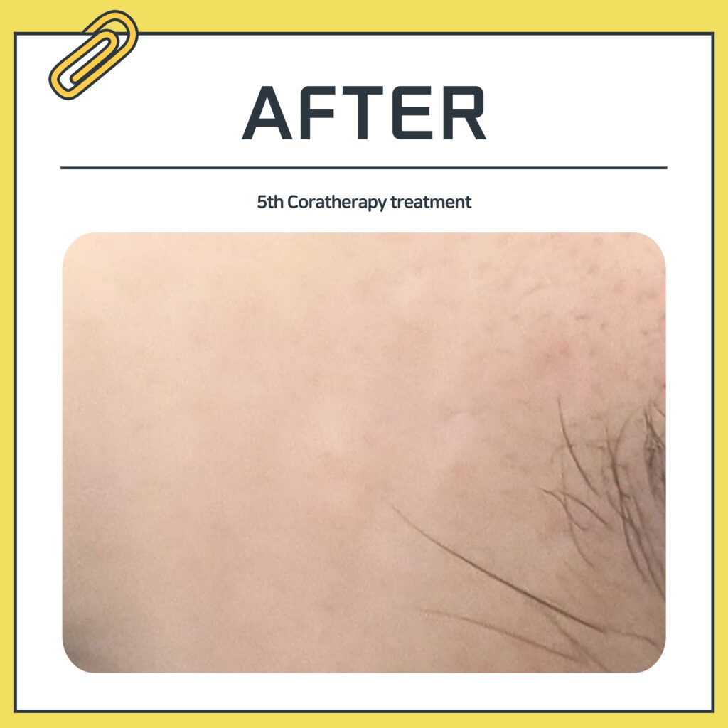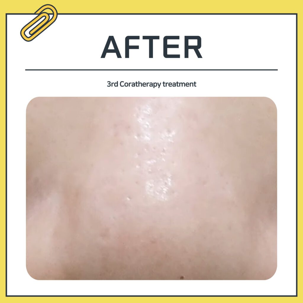 Report :: 5 sessions of Coratherapy for the forehead, 9 sessions for the nose