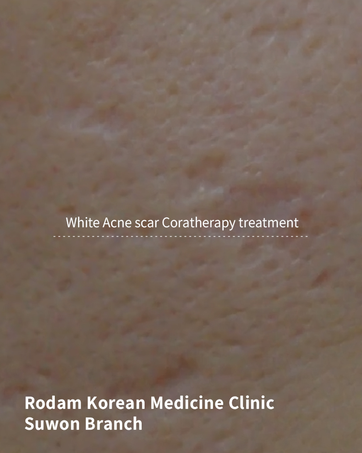 White acne scars after treatment with Coratherapy at a Korean Medicine Clinic.